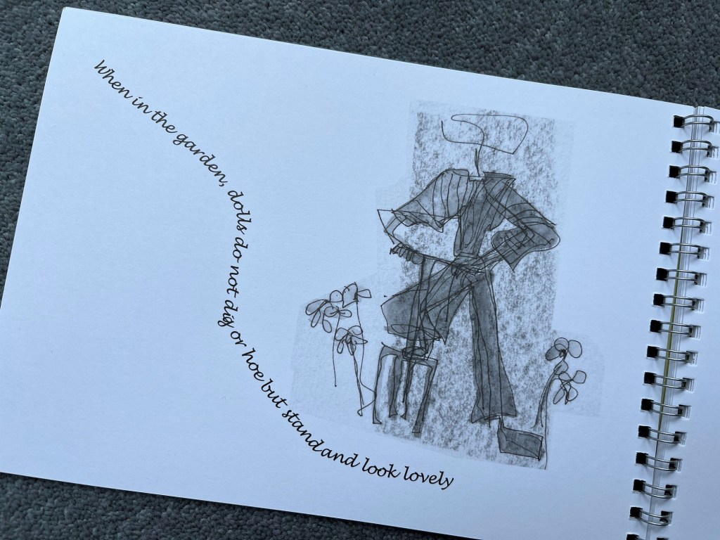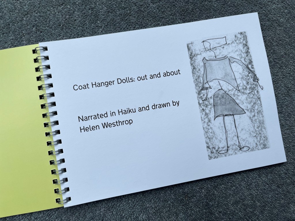 The first publication in this series is Coat Hanger Dolls: out and about, which includes 23 sketches by Helen Westhrop of her famous and beautiful Coat Hanger Dolls. The sketches are accompanied by Haiku to set the scene.